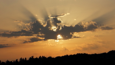 Kein "böser Blick". Nur schlichte Physik. Und wunderschön: Die Sonne erkämpft sich am Abendhimmel ein Loch in den dichten Wolkendecken