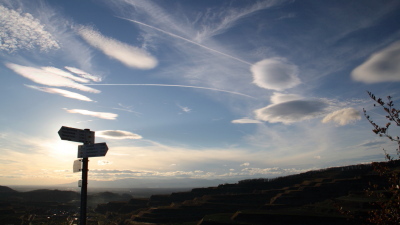 Diese Wolken - vom Kaiserstuhl aus Richtung Vogesen aufgenommen zeigen auf viel Wind und auf schlechtes Wetter hin.