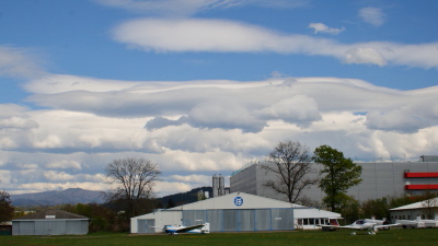 Wolken, oben und unten glatt und wellenförmig. Das ist ein Schwarzwaldfön.
